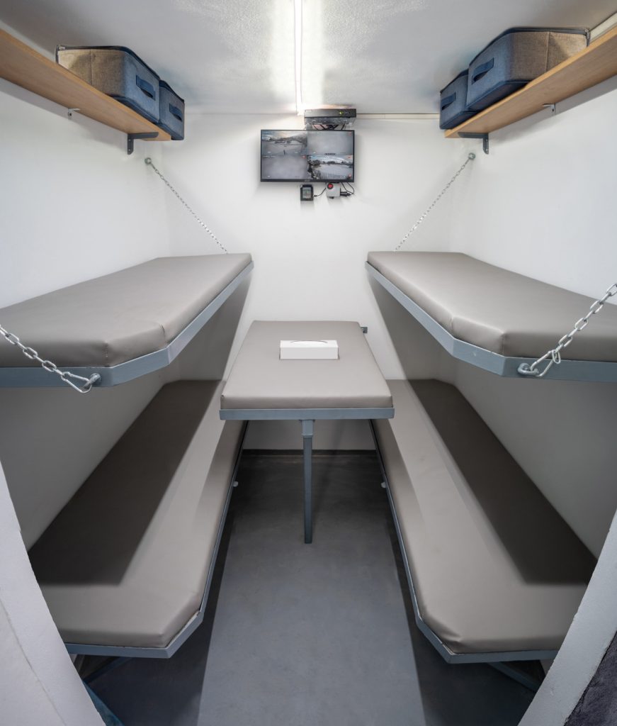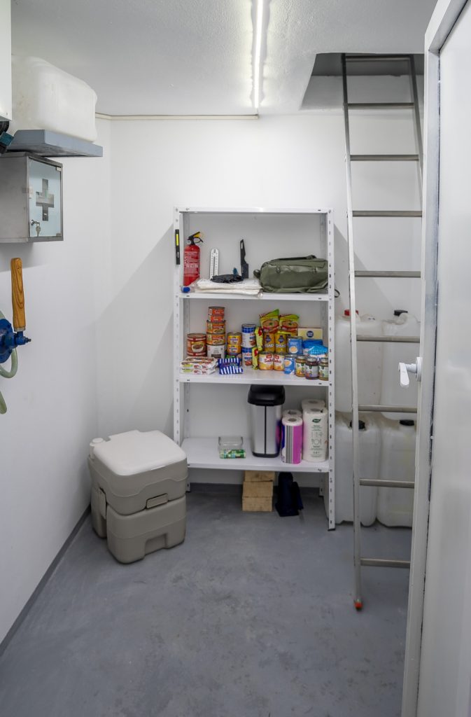 Zábery z prototypu bezpečného krytu. V kryte sa nachádza všetko potrebné vybavenie na prežitie počas 7 dní v prípadne konfliktu, blackoutu alebo krízy. Tento typ bunkru je nezávislý, má všetky potrebné systémy aby fungoval. V bežnom nekrízovom režime dokáže byť napojený priamo na dom, pri ktorom je postavený.