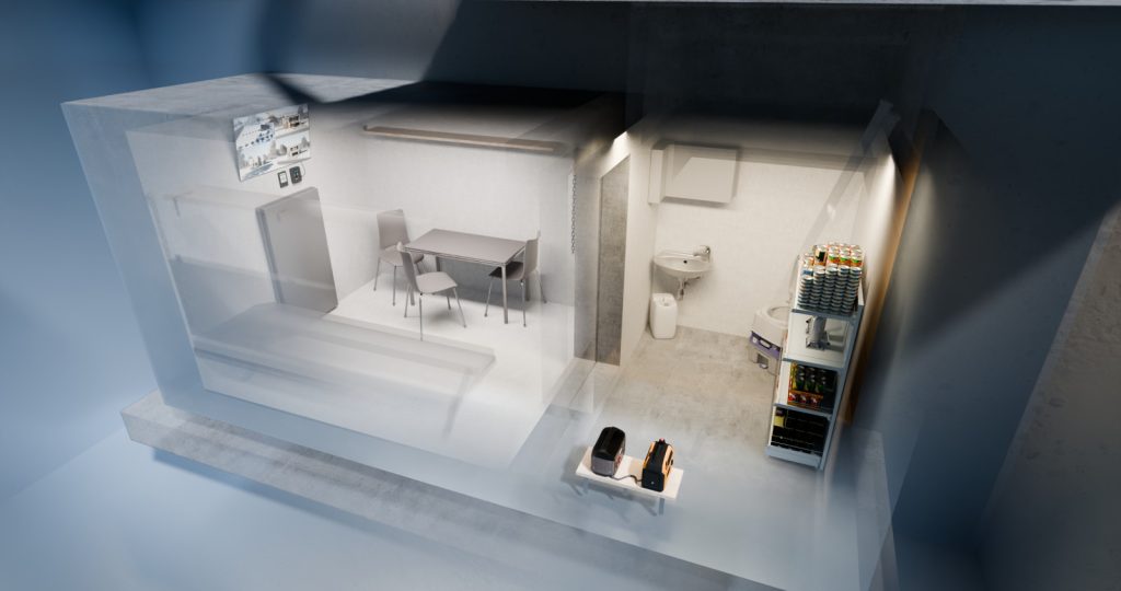 Prvý prototyp bezpečného krytu je už postavený a je situovaný na strednom Slovensku. Showroom tohto bunkru je plne funkčný a vybavený všetkými prvkami, ktoré nájdete aj v reálnej inštalácii. Ukážkový prototyp má zabudovanú klimatizáciu, solárny systém navýrobu energie a kamerový systém. Samozrejmosťou je toaleta, umývadlo, a sklad zásob. Taktiež sa tu nachádza pohodlné zázemie a miesto pre spánok.