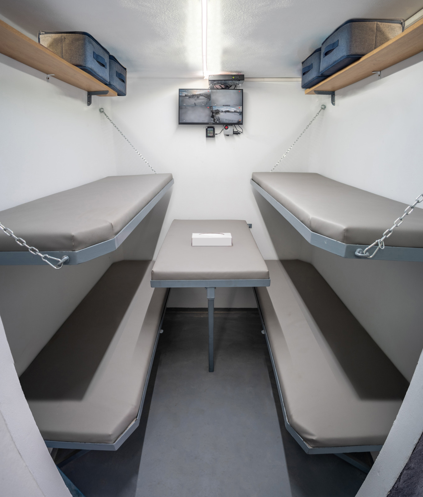 Prototyp bezpečného krytu je umiestnený nad zemou, aby bolo možné do neho jednoducho vstúpiť na obhliadku. Je to model 5 x 2 m pre 4 +1 osoby. Postavený je zo železobetónu, má aj určité vlastnosti protiatómového krytu a spĺňa náročné štandardy bezpečnosti. V kryte sú zapojené všetky bezpečnostné systémy, kamerový systém a taktiež napojenie na energie. Preto si ho môžete dôkladne vyskúšať a zažiť aspoň krátky pobyt v ňom.